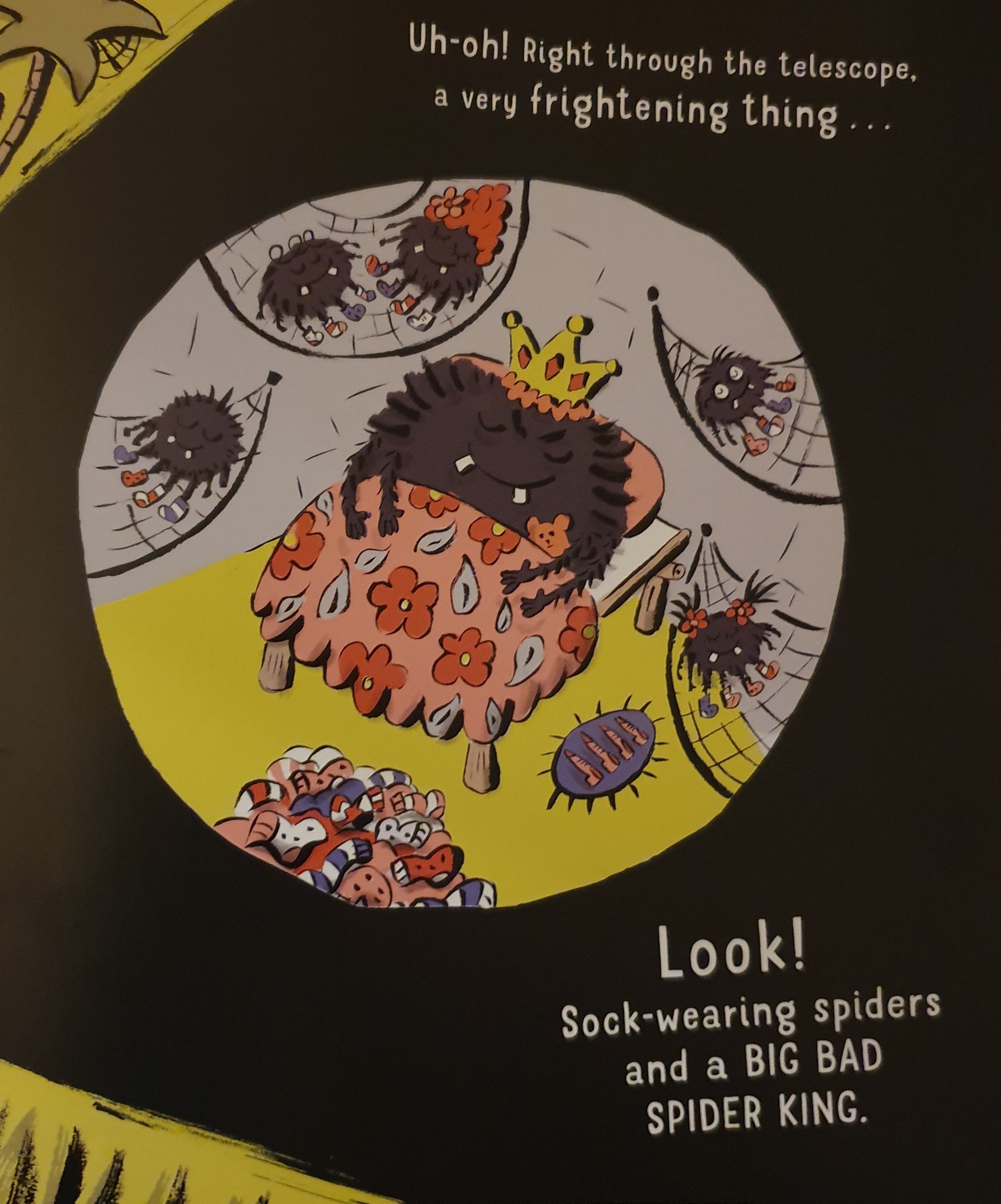 And you don’t get any laughter than the Bug Bad Spider King and the pesky sock-stealing spiders.