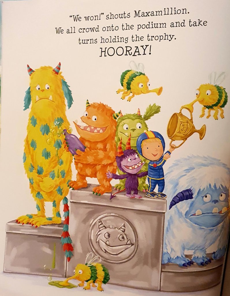 This is a book about the power of imagination. Albie’s homemade track comes to life and he is racing the other monsters, including Maxamillian who tries to cheat his way to victory.