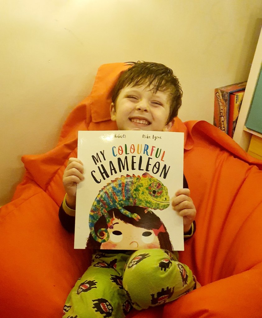 This is a charming rhyming picture book with lovely illustrations. We play spot the chameleon in each picture – some of the were quite tricky.