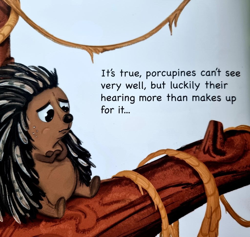 Poppy and Rory are a pair of unlikely pals who get off on the wrong foot. When they forst meet, Poppy’s porcupine instints kick in and she scares the cautious cub with her terrifying spikes.