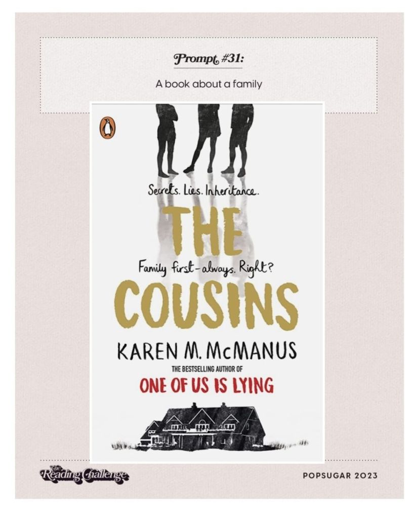 So many prompts could fit this prompt, so just picked one from my TBR. I’m a fan of Karen M Mcmanus’s YA thrillers and The Cousins is a standalone that fitted the bill.