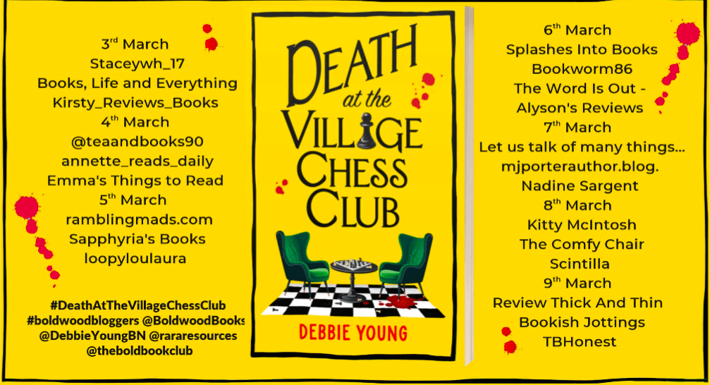 Thank you to Debbie Young and Boldwood Books for my gifted copy of Death at the Village Chess Club and to Rachel at Rachel’s Random Resources for inviting me to be a part of this fun blog tour.