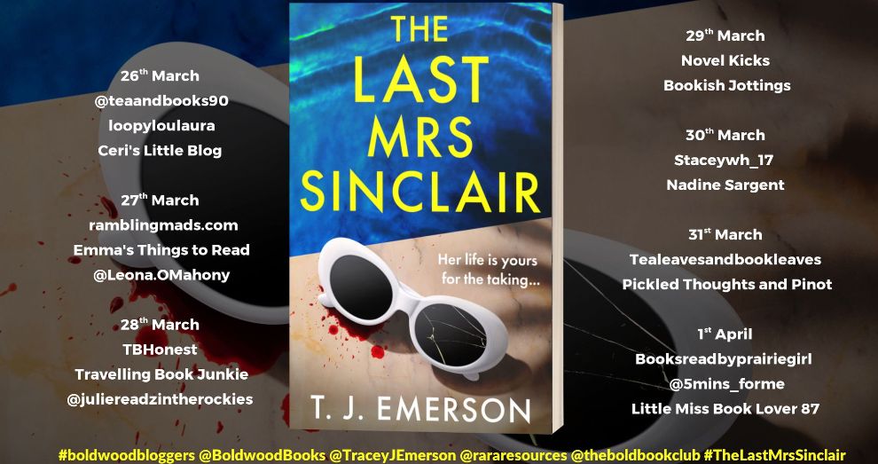 Thank you to Boldwood Books for my digital copy of The Last Mrs Sinclair, and to Rachel at Rachel’s Random Resources for inviting me to be a part of this intriguing blog tour.